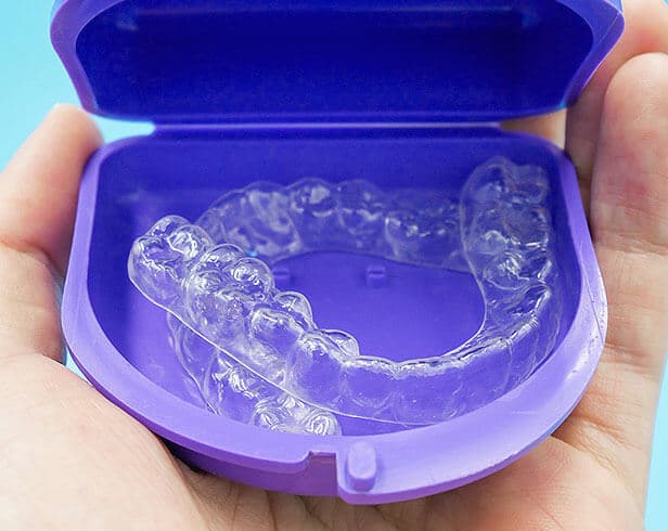 You will wear a set of aligners for approximately two weeks, removing them only to eat, drink, brush, and floss. As you replace each aligner with the next in the series, your teeth will move slowly but surely week by week, until they have straightened to their final positions. About once every six weeks you will come in for a visit to ensure that you are making the planned progress. Your total treatment time will be around nine to 15 months, and the number of aligners worn during treatment is around 18 and 30, but both numbers vary case to case.